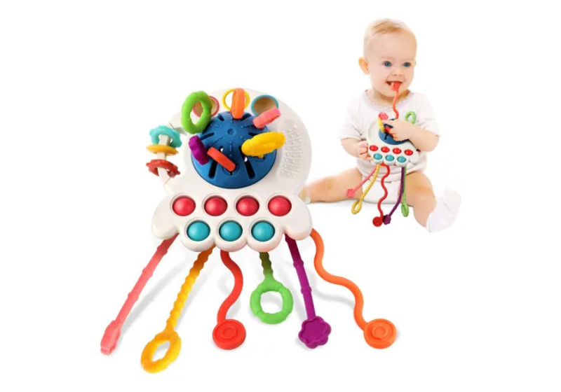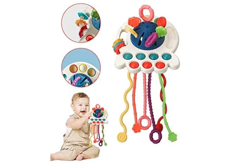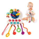 El juguete sensorial y mordillo 2 en 1 es ideal para acompañar la exploración de los bebés. Con varias texturas, colores y piezas móviles, estimula los sentidos a través de la vista y el tacto, mientras favorece la coordinación ojo-mano y la habilidad manual. Además, alivia las encías en la etapa de dentición, ofreciendo diversión segura y funcional.