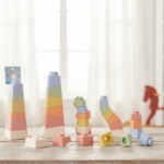 Con bloques de silicona de diferentes formas geométricas, este juguete estimula la coordinación ojo-mano, la motricidad fina y el pensamiento lógico, mientras introduce colores y formas básicas de manera divertida.